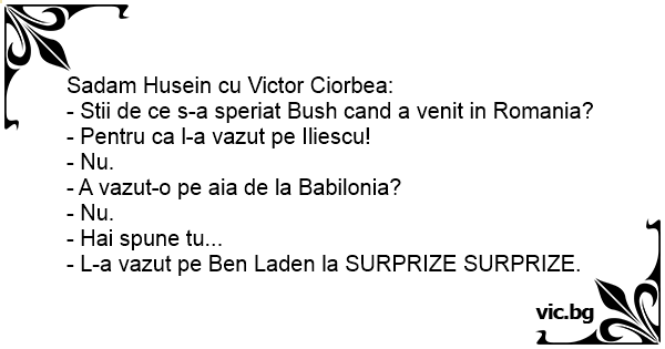 - Stii de ce s-a speriat Bush cand a venit in Romania?