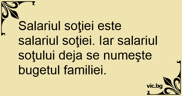 Salariul soţiei este salariul soţiei. Iar salariul soţului deja se numeşte bugetul familiei.