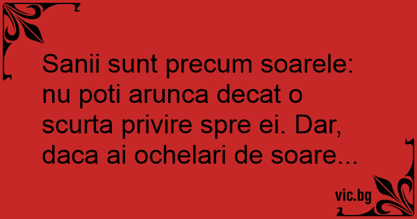 Sanii sunt precum soarele: nu poti arunca decat o scurta privire spre ei. Dar, daca ai ochelari de soare...