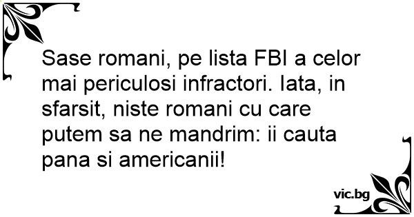 Sase romani, pe lista FBI a celor mai periculosi infractori. Iata, in sfarsit, niste romani cu care putem sa ne mandrim: ii cauta pana si americanii!