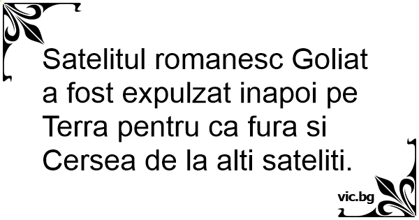Satelitul romanesc Goliat a fost expulzat inapoi pe Terra pentru ca fura si Cersea de la alti sateliti.