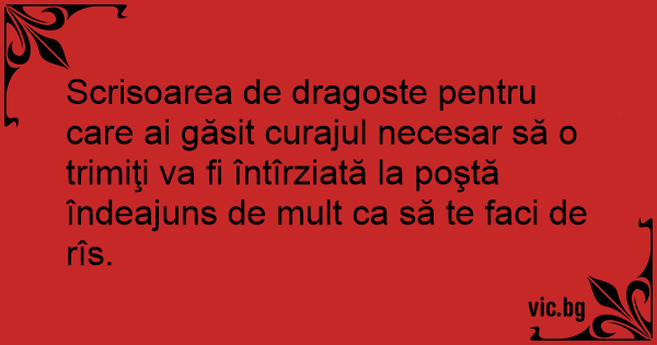 Scrisoarea de dragoste pentru care ai găsit curajul necesar să o trimiţi va fi întîrziată la poştă îndeajuns de mult ca să te faci de rîs.
