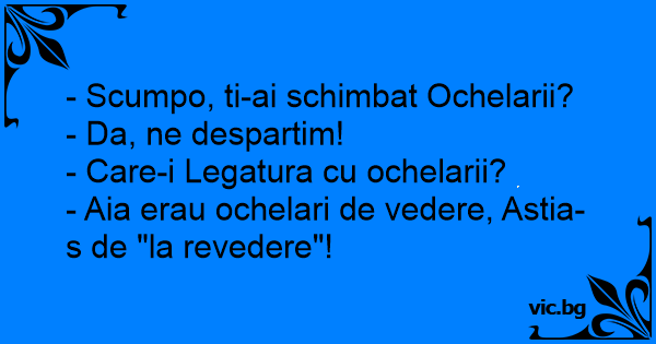 - Aia erau ochelari de vedere, Astia-s de "la revedere"!