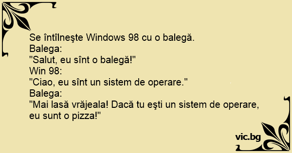 "Mai lasă vrăjeala! Dacă tu eşti un sistem de operare, eu sunt o pizza!"