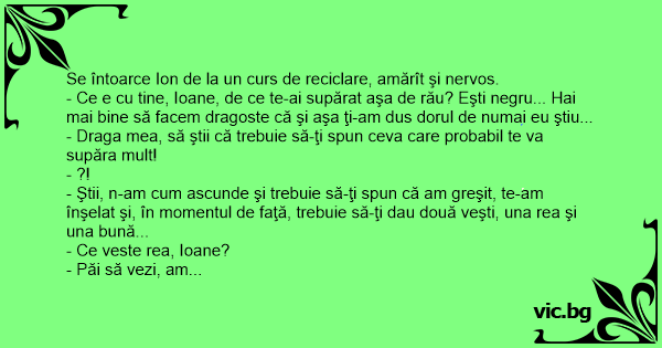 Se întoarce Ion de la un curs de reciclare, amărît şi nervos.