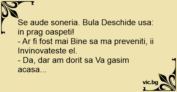 Se aude soneria. Bula Deschide usa: in prag oaspeti!