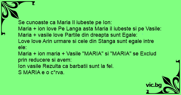 Maria + ion maria + Vasile "MARIA" si "MARIA" se Exclud prin reducere si avem: