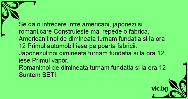 Se da o intrecere intre americani, japonezi si romani,care Construieste mai repede o fabrica.