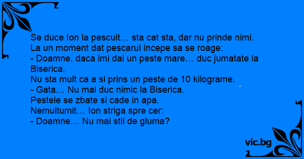 - Doamne, daca imi dai un peste mare… duc jumatate la Biserica.