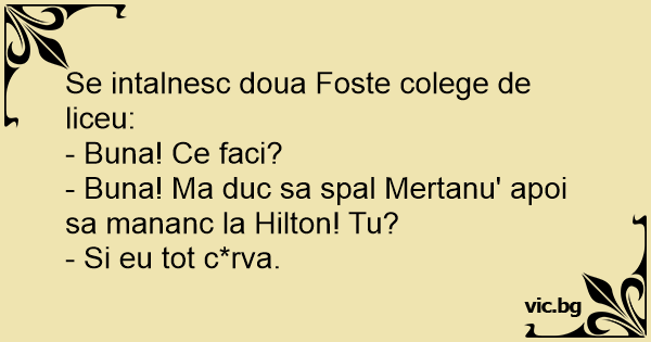 - Buna! Ma duc sa spal Mertanu' apoi sa mananc la Hilton! Tu?