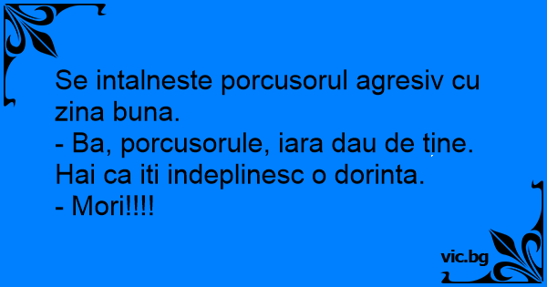 - Ba, porcusorule, iara dau de tine. Hai ca iti indeplinesc o dorinta.