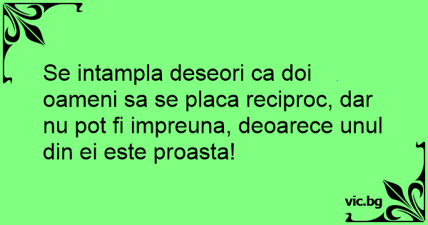 Se intampla deseori ca doi oameni sa se placa reciproc, dar nu рот fi impreuna, deoarece unul din ei este proasta!