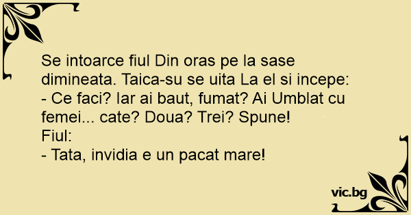 Se intoarce fiul Din oras pe la sase dimineata. Taica-su se uita La el si incepe: