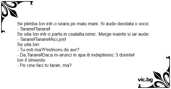 - Da,Tarane!Daca m-arunci in apa iti indeplinesc 3 dorinte!