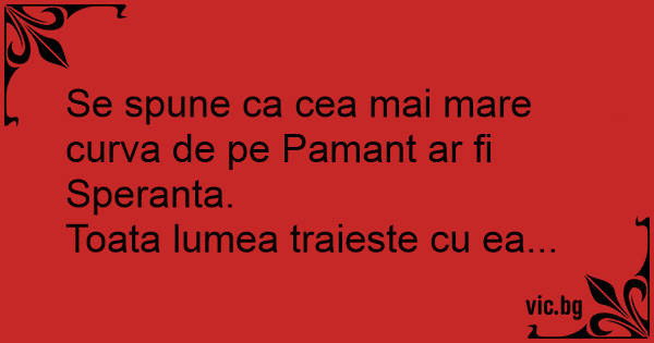 Se spune ca cea mai mare curva de pe Pamant ar fi Speranta.