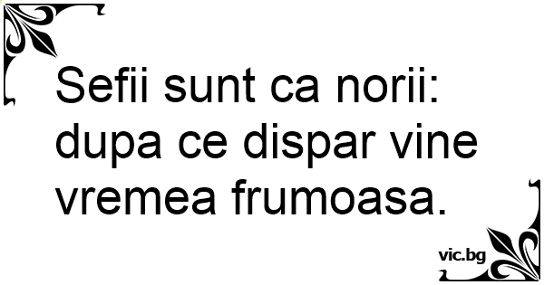 Sefii sunt ca norii: dupa ce dispar vine vremea frumoasa.