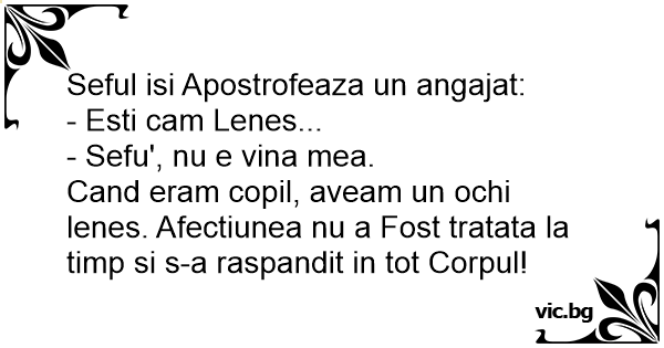 Cand eram copil, aveam un ochi lenes. Afectiunea nu a Fost tratata la timp si s-a raspandit in tot Corpul!