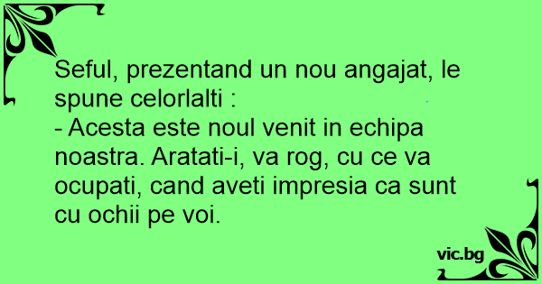 Seful, prezentand un nou angajat, le spune celorlalti :