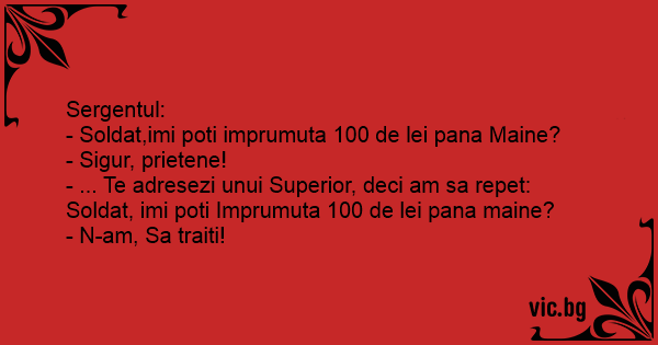 - Soldat,imi poti imprumuta 100 de lei pana Maine?