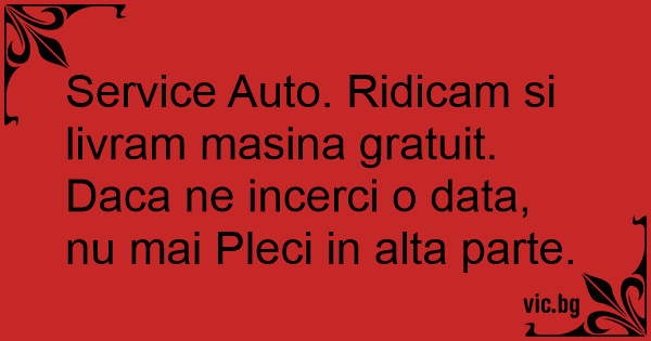 Service Auto. Ridicam si livram masina gratuit. Daca ne incerci o data, nu mai Pleci in alta parte.