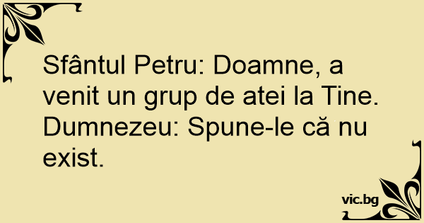 Sfântul Petru: Doamne, a venit un grup de atei la Tine.