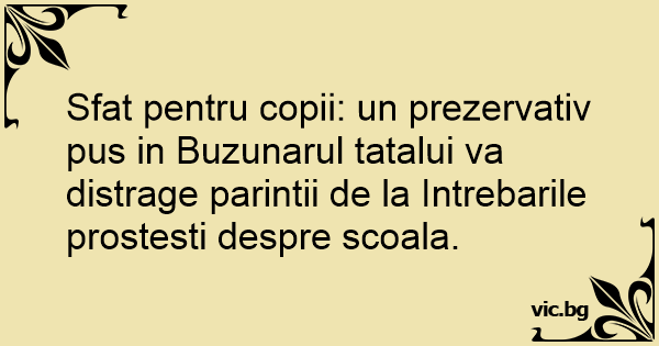 Sfat pentru copii: un prezervativ pus in Buzunarul tatalui va distrage parintii de la Intrebarile prostesti despre scoala.