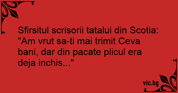 "Am vrut sa-ti mai trimit Ceva bani, dar din pacate plicul era deja inchis..."