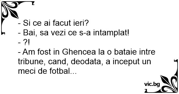 - Am fost in Ghencea la o bataie intre tribune, cand, deodata, a inceput un meci de fotbal...