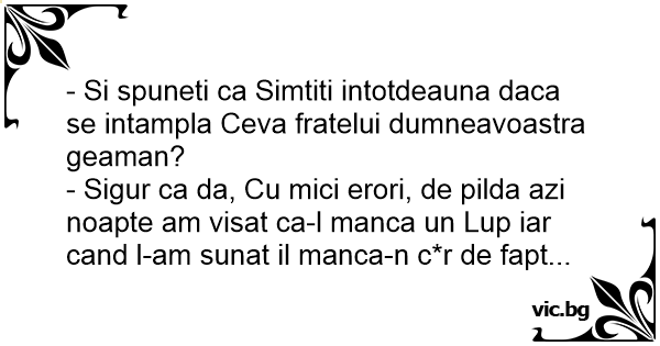 - Sigur ca da, Cu mici erori, de pilda azi noapte am visat ca-l manca un Lup iar cand l-am sunat il manca-n c*r de fapt...