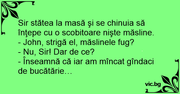 Sir stătea la masă şi se chinuia să înţepe cu o scobitoare nişte măsline.