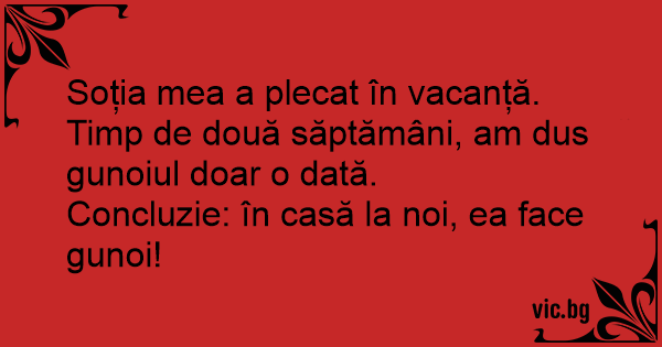 Soția mea a plecat în vacanță. Timp de două săptămâni, am dus gunoiul doar o dată.