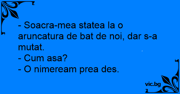 - Soacra-mea statea la o aruncatura de bat de noi, dar s-a mutat.
