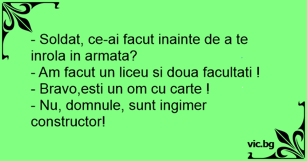 - Soldat, ce-ai facut inainte de a te inrola in armata?