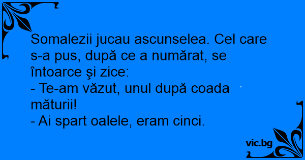 Somalezii jucau ascunselea. Cel care s-a pus, după ce a numărat, se întoarce şi zice: