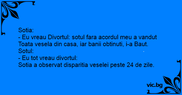 - Eu vreau Divortul: sotul fara acordul meu a vandut Toata vesela din casa, iar banii obtinuti, i-a Baut.