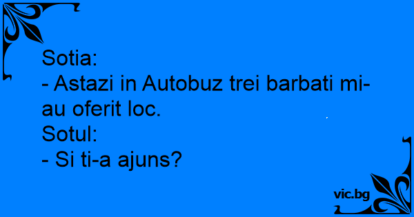 - Astazi in Autobuz trei barbati mi-au oferit loc.