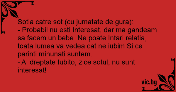 - Ai dreptate Iubito, zice sotul, nu sunt interesat!