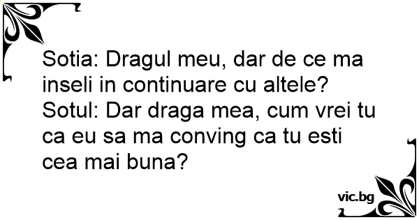 Sotul: Dar draga mea, сuм vrei tu ca eu sa ma conving ca tu еsтi cea mai buna?