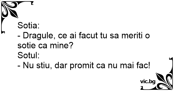 - Dragule, ce ai facut tu sa meriti o sotie ca mine?