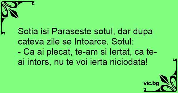 Sotia isi Paraseste sotul, dar dupa cateva zile se Intoarce. Sotul:
