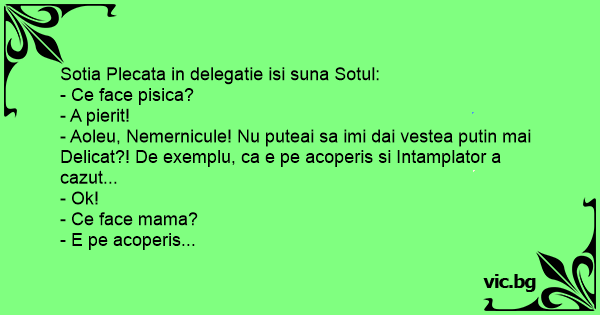- Aoleu, Nemernicule! Nu puteai sa imi dai vestea putin mai Delicat?! De exemplu, ca e pe acoperis si Intamplator a cazut...