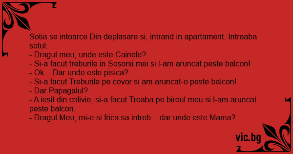 Sotia se intoarce Din deplasare si, intrand in apartament, Intreaba sotul: