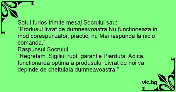 "Regretam. Sigiliul rupt, garantie Pierduta. Adica, functionarea optima a produsului Livrat de noi va depinde de cheltuiala dumneavoastra."