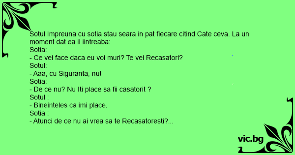 Sotul Impreuna cu sotia stau seara in pat fiecare citind Cate ceva. La un moment dat ea il iintreaba:
