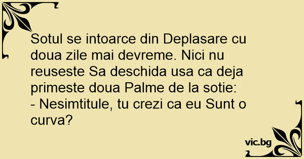 Sotul se intoarce din Deplasare cu doua zile mai devreme. Nici nu reuseste Sa deschida usa ca deja primeste doua Palme de la sotie: