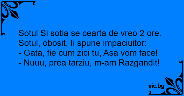 Sotul Si sotia se cearta de vreo 2 ore. Sotul, obosit, Ii spune impaciuitor:
