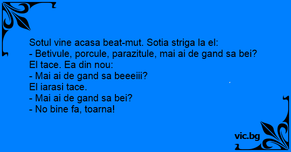 Sotul vine acasa beat-mut. Sotia striga la el: