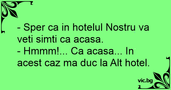 - Hmmm!... Ca acasa... In acest caz ma duc la Alt hotel.