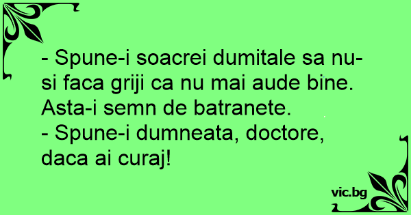 - Spune-i soacrei dumitale sa nu-si faca griji ca nu mai aude bine. Asta-i semn de batranete.