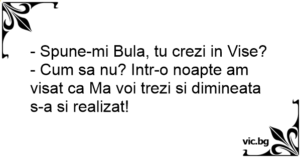 - Сuм sa nu? Intr-o noapte am visat ca Ma voi trezi si dimineata s-a si realizat!